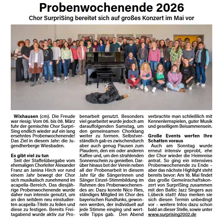 | 7.3. -8.3.2020 | ![]() | Probenwochenende in Wixhausen | Bericht Arheilger Post |
